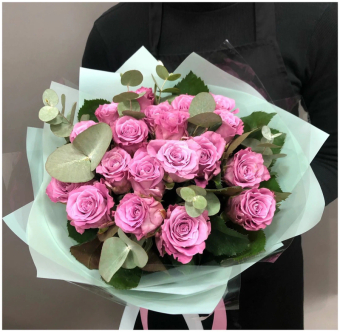 Пионовидные розы Силва Баблс с эвкалиптом | Купить с доставкой в Калининграде